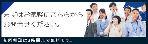 初回相談は無料(3時間まで)です。もちろん、有資格者が面談します。お気軽にお問合せください。